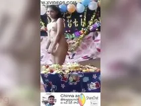 A beautiful woman of Indian descent strips naked for her loved one on his birthday.