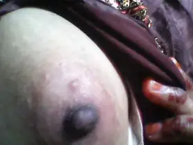 Beautiful Indian wife showing her beauty by playing with her big breast.