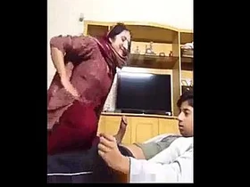 An aunt of an Indian boy sucks his friend’s cock.