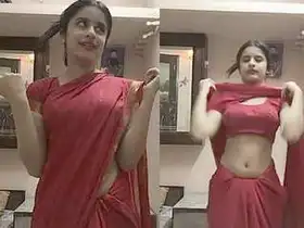 Sapna bhabhi flaunts her big boobies while removing her orange saari