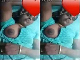 Village girl shows her big assets during a video call with her lover.