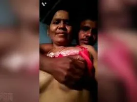 Exploits of an Indian aunt with natural large assets and young lover in South Indian sex video.