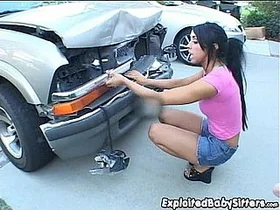 Small boobs nanny anal fucks in the street