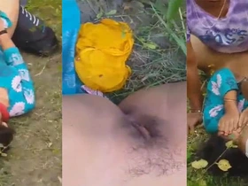 Bengali village wife strips for outdoor selfies and shows big breast and hairy private part