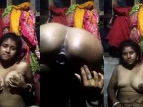 A Bengali woman enjoys solo pleasure with her natural breasts.