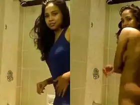 Beautiful Indian woman showing her body and taking a bath while on a video call.