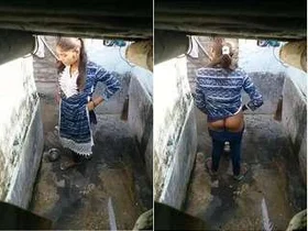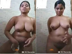 Desi Indian girl Urmi flaunts her bathing skills on video call