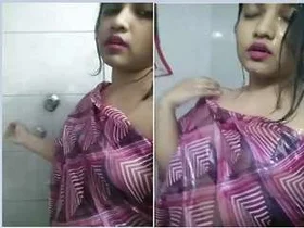 Desi Girl with Cute Boobs Shows Off and Bathes in Exclusive Video