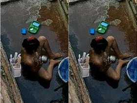 Exclusive Video of a Cute Desi Indian Girl Bathing Outdoors