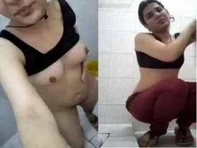 Beautiful Indian wife undressing in the bathroom for an erotic dictating video