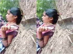 Boobs of the Indian village girl in hot scenes with lover on call.