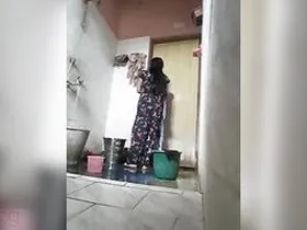 Self-endorsement of a curvaceous Indian woman bathing with online video call