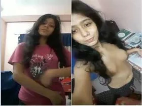 Exclusive Cute Indian Girl Pushes Her Breasts and Fucks Hard in the Anal with Lover