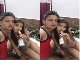 Desi Bhabhi Boob Pressing and Standing Fuck each other With Dewar