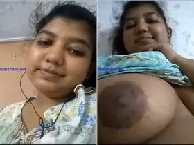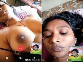 Indian mallige girl shows her big boobs to the lover via video call.