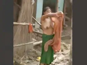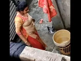 Married Indian woman in her chubbiness poses for an adult video while she is washed up in the open air.