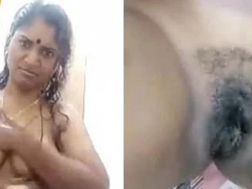 Indian scorcher flaunts her豊افية breasts and unshaven pussy in the bathroom for her lover.