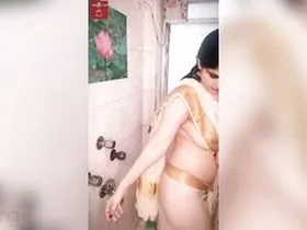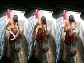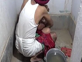 Married indian woman is alone with her husband and she is naked while he is giving her a bath.