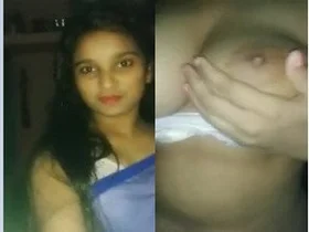 Married woman of Tamil origin showing her big Boobs in a self taken nude photo in the bathroom.