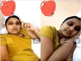 Beautiful Indian wife showing her beauty by playing with her big breast.