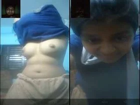 Beautiful Indian girl flashing her breasts during a video call