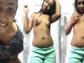 A blue film of a girlfriend showing off her large Tamil breasts.