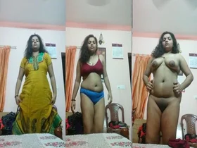 A beautiful Bengali woman undresses and playfully caresses her big breasts.