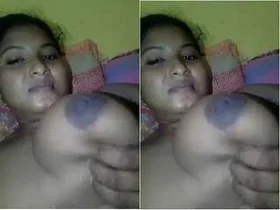 Pretty and hot figure of a Indian woman stimulating her breasts and pleasuring herself for her boyfriend.