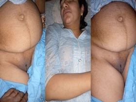 Desi wife lies in bed with legs spread widely and sex boob naked