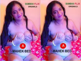 Large breasted Indian wife cheats and has sex on the bed.