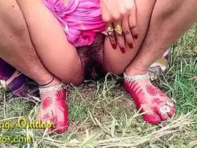 Desi bhabi moans in pleasure while peeing outdoors