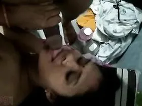 A young Indian girl gives a skilled blowjob and receives cum on his face in this steamy video