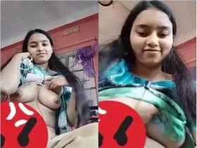 Desi girl showing her breasts and fingering