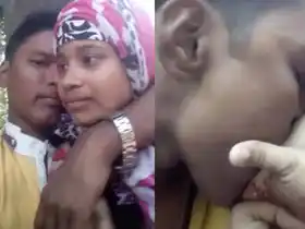teen outdoor fun gf giving her breasts to bf