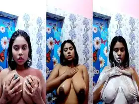 Bhabha's huge breasts jerking her pussy on camera for selfies