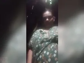Beautiful Bangladeshi village girl shows her big breast in a self-taken photo.