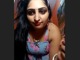 Married Indian woman from Mumbai shows her beautiful breasts and belly in a solo play.