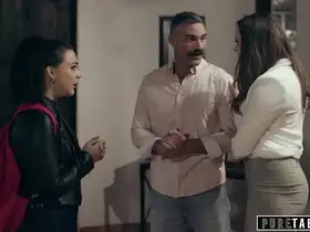 Sexy brunette Anya Kinski turns a naughty girl on with Jordys big dick