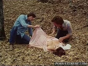 Sexual deviant tempts brunette beauty outdoors in classic porn fashion