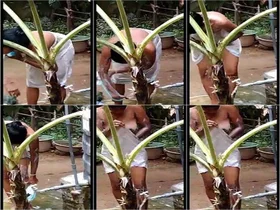 Sri Lankan wife enjoys a secret outdoor bath on camera
