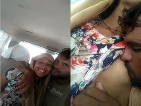 Exclusive Car Romance with Cute Indian Lover and Boob Sucking