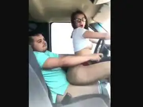 Sexy euro girl loves sucking and fucking herself with BF in the car before going to work