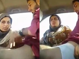 A woman of Pakistani origin gives her boyfriend a blow job in his car
