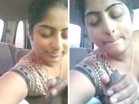 An Indian bhabi giving a blow job on the man she is driving in the car.