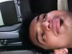Beautiful Indian woman giving oral sex to her smiling boyfriend in the car.