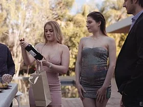 Gina Valentina’s shy personality disappears while being pleased by multiple partners in a jacuzzi