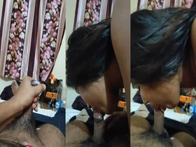 A beautiful Tamil woman gives a great blow job to a hot Indian man while being filmed.
