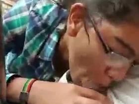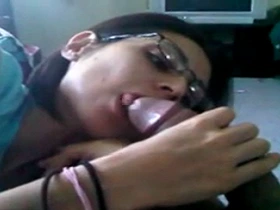 College teacher from Bangalore gives a sensual blowjob to her student in glasses