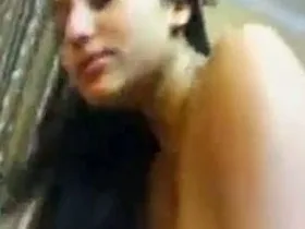 A slut like woman from India shows her breasts and performs a deep blow job to a man who is taking pictures of her.
