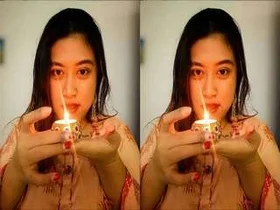 A Indian girl gives a blow job to her lover during a romantic supper